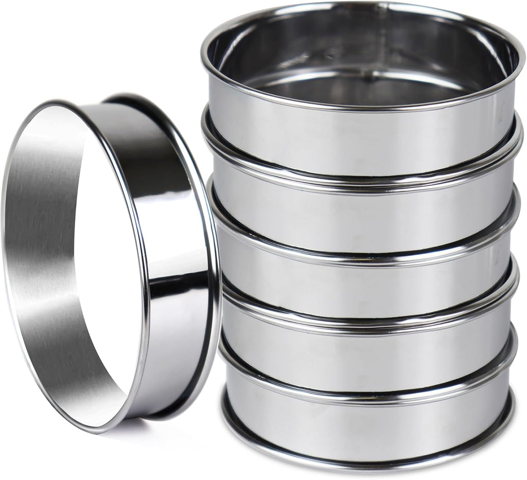 Este conjunto de 6 aros em aço inoxidável é essencial para quem busca apresentação impecável em pratos doces e salgados. Feito em aço inox 100% alimentício, suporta altas temperaturas sem deformar e é antiferrugem, garantindo anos de uso sem preocupações!