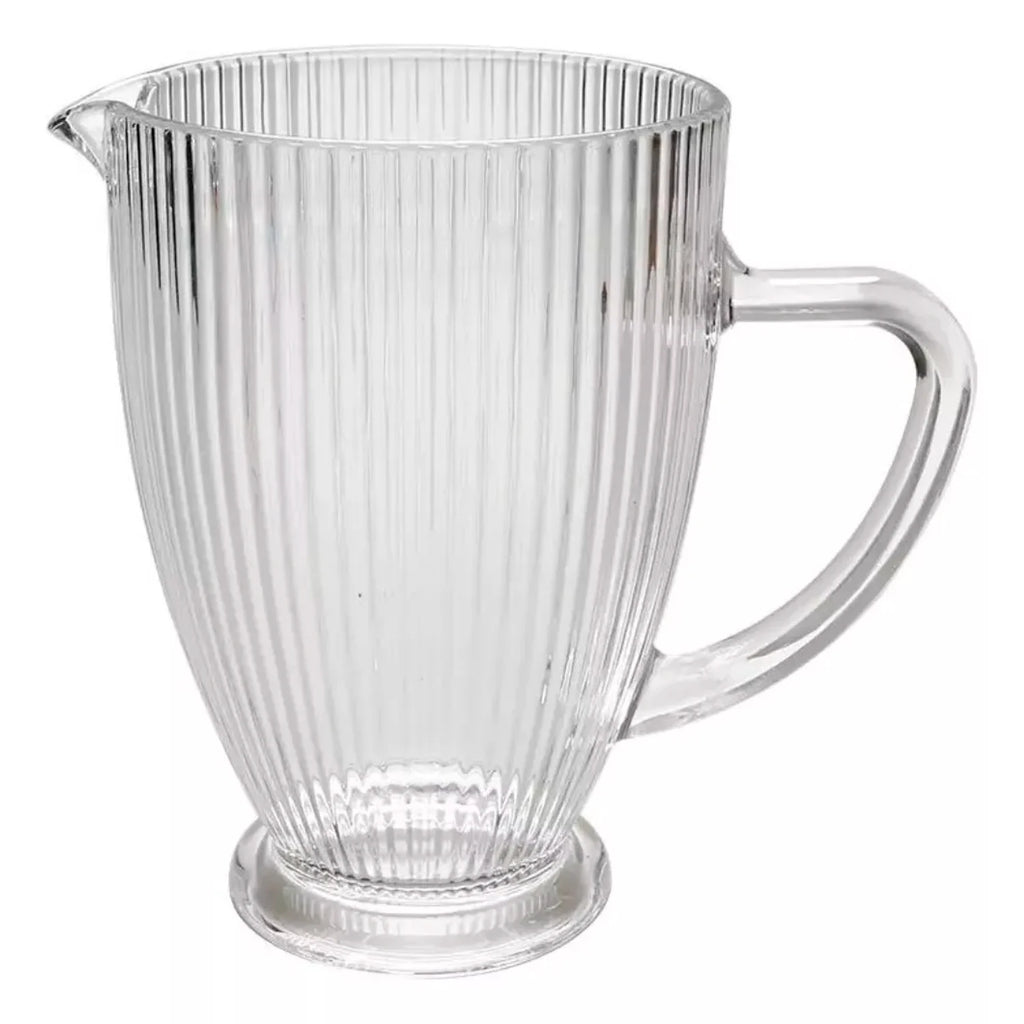 Eleve a apresentação de suas bebidas com este jarro de vidro texturizado, que combina design contemporâneo em linhas em relevo com funcionalidade inteligente - perfeito para momentos especiais ou uso diário!