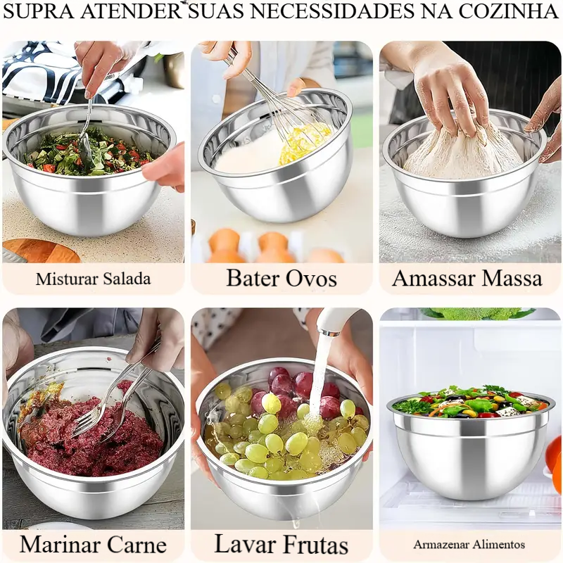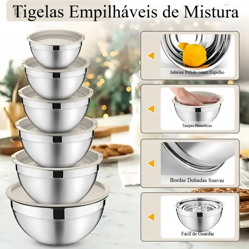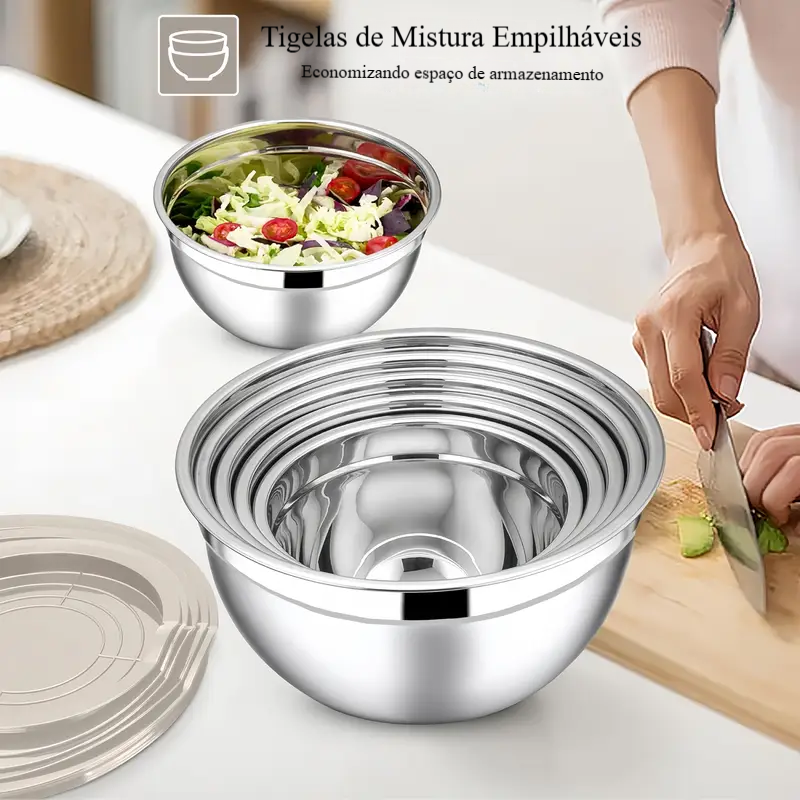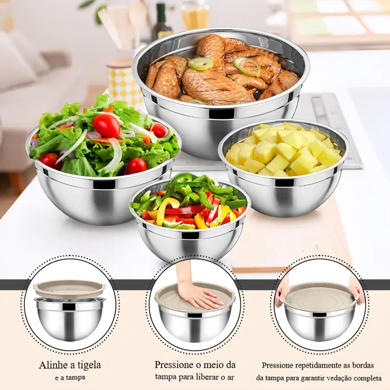 🍲 Jogo de Tigelas de Aço Inoxidável com Tampa Hermética – Praticidade e Durabilidade para Sua Cozinha!