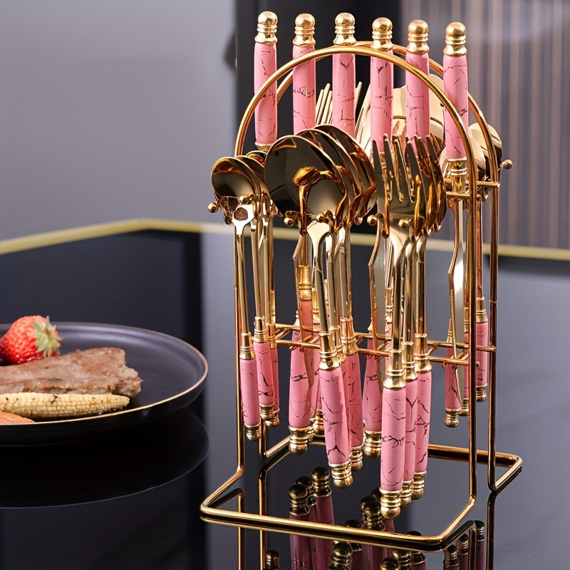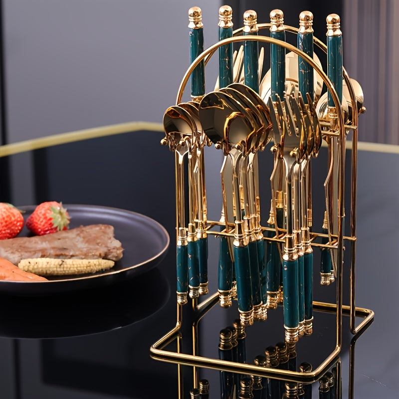 🍽️ Talheres de Aço Inoxidável com Cabo de Cerâmica – 24 Peças Luxo