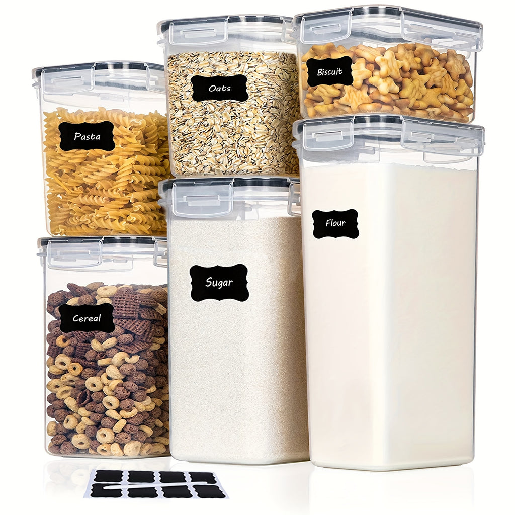 Este conjunto de recipientes herméticos em plástico livre de BPA é ideal para quem busca organização, praticidade e preservação de alimentos. Com tampas vedadas e design empilhável, perfeito para cereais, farinhas, grãos e muito mais. Inclui etiquetas e marcador para fácil identificação!