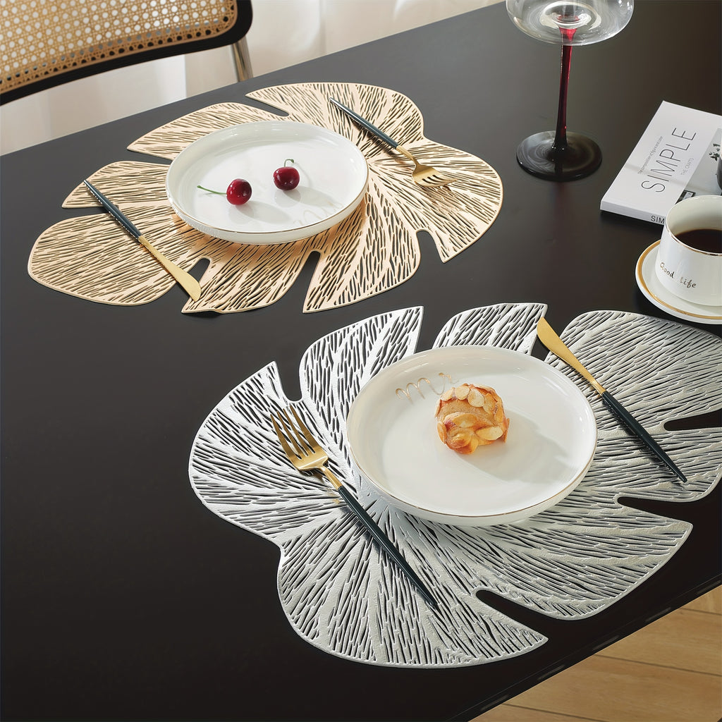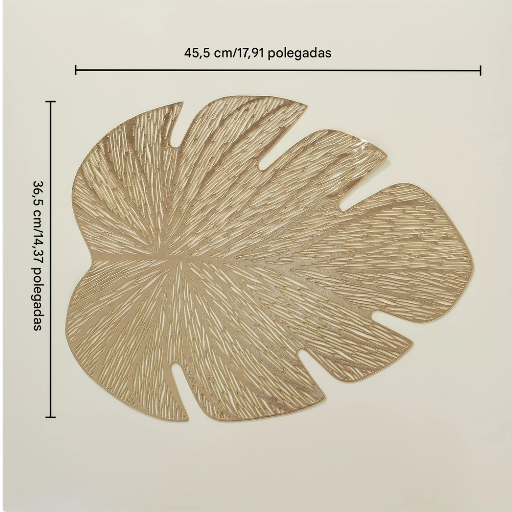Leve o charme da natureza para suas refeições com este conjunto de jogos americanos em vinil! Com design tropical metálico, eles unem praticidade e sofisticação, protegendo sua mesa com estilo.