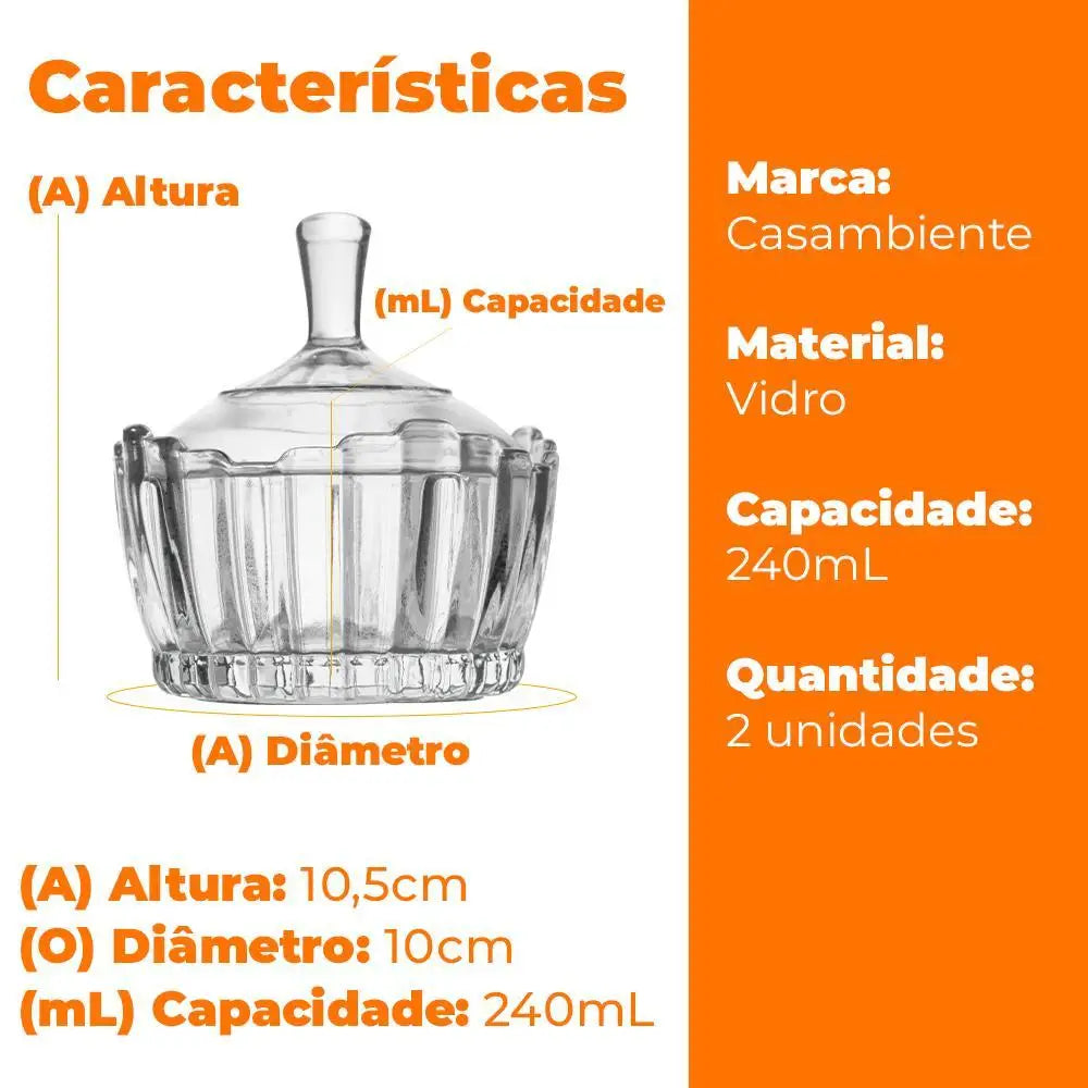 Eleve a decoração da sua casa com este conjunto de balaios em vidro espesso da Casambiente, perfeito para armazenar balas, chocolates e doces com estilo e elegância.
