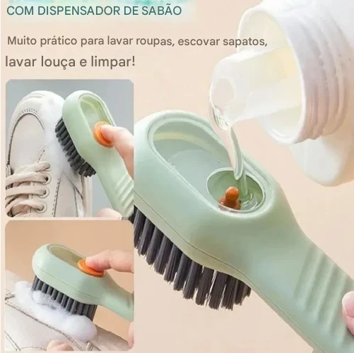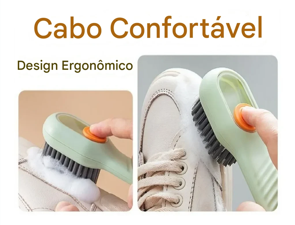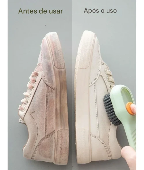 👟 ESCOVA MULTIUSO COM DISPENSER – Limpeza Inteligente para Seus Tênis e Objetos!