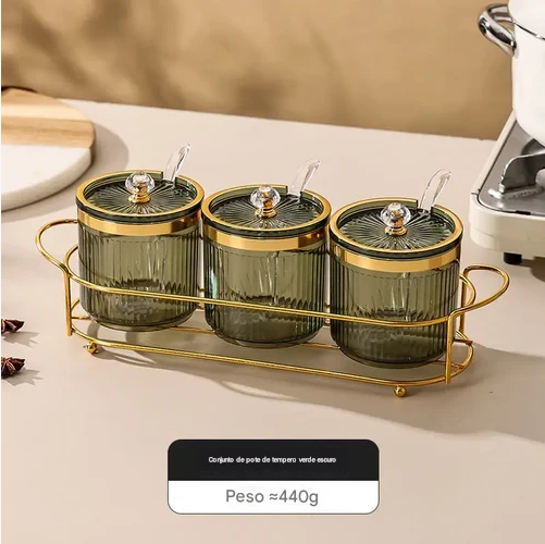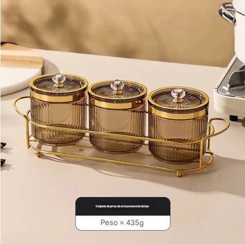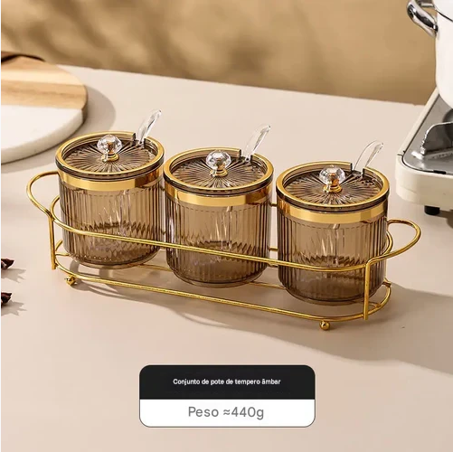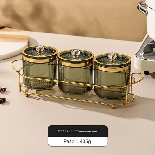 Exiba seus temperos, nozes ou frutas secas com estilo neste conjunto moderno de 3 potes + bandeja organizadora!