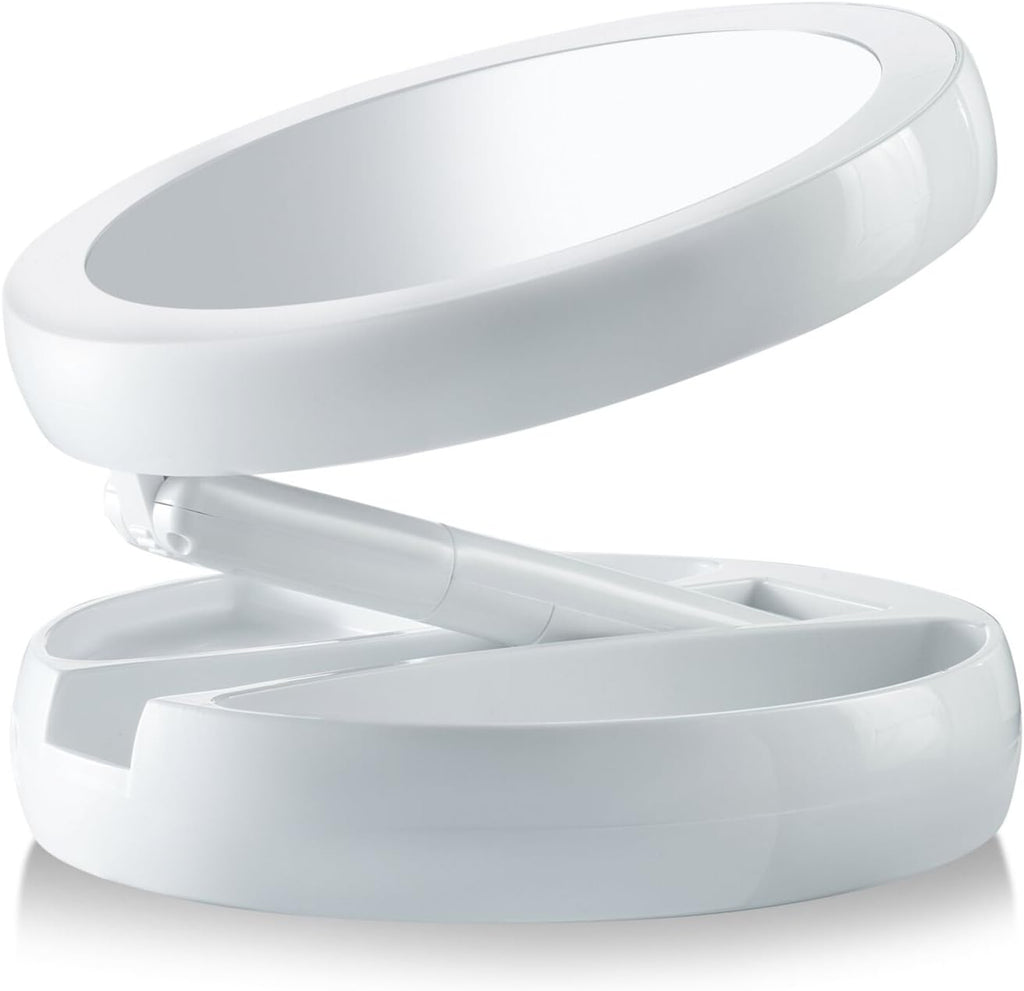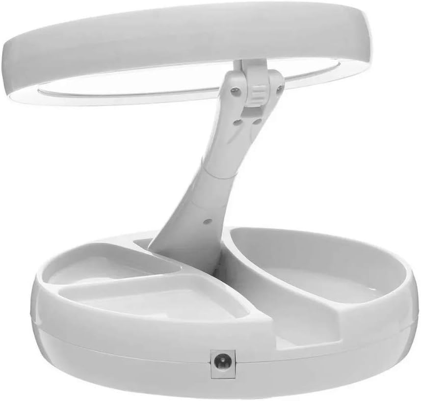 Ideal para quem busca precisão e iluminação profissional na maquiagem ou cuidados diários, este espelho dobrável, com LED e aumento 10X é o acessório perfeito para sua rotina de beleza. Compacto e versátil, ele ainda inclui um organizador de maquiagem na base!