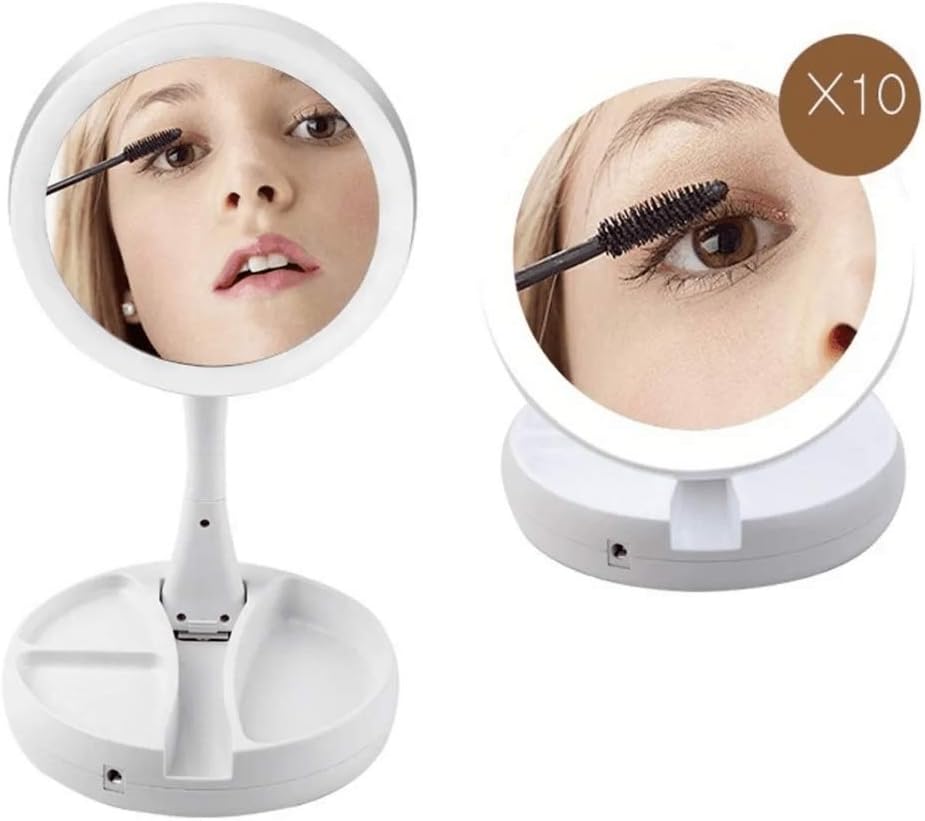 ✨ Espelho de Mesa com LED e Aumento 10X – Beleza e Praticidade em Qualquer Lugar!