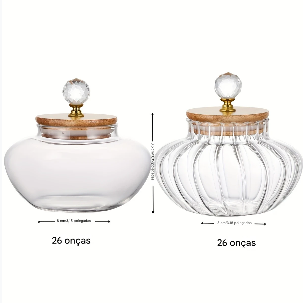 • Material: Vidro (corpo) + Bambu (tampa) + Borracha (vedação)