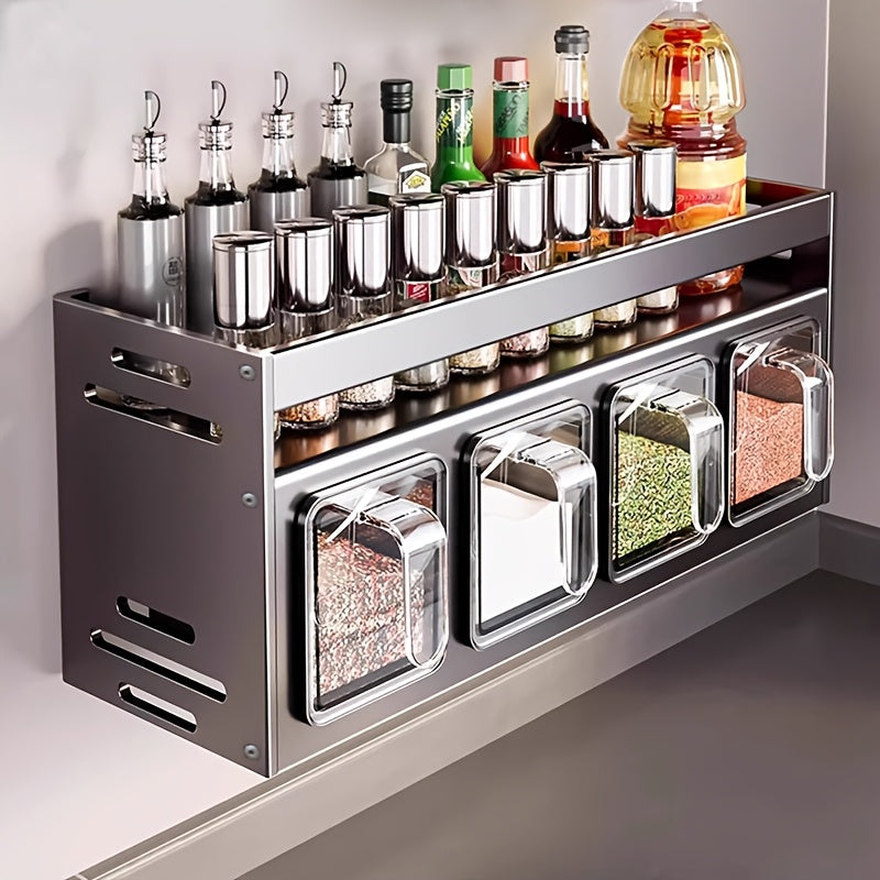 Transforme sua cozinha com esta prateleira em alumínio premium, perfeita para manter seus temperos sempre à mão e bem conservados.