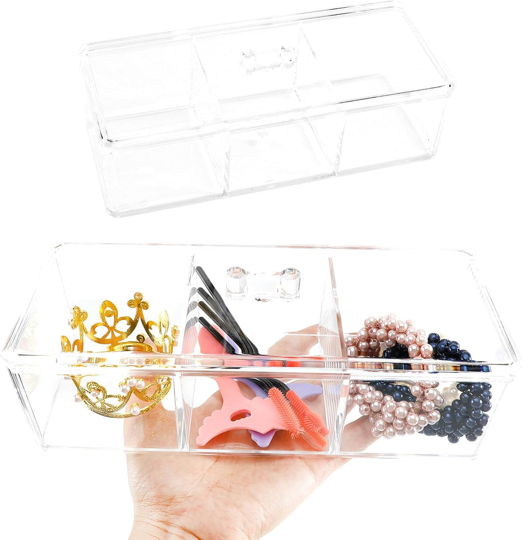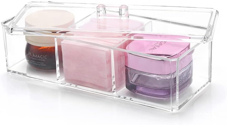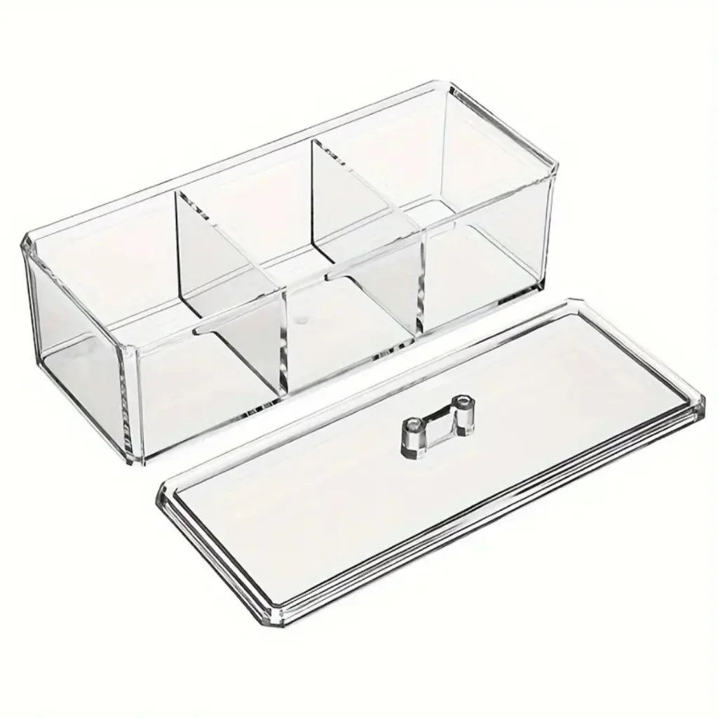 Mantenha seus itens de beleza ou escritório perfeitamente organizados e visíveis com esta caixa compacta de acrílico com 3 divisórias internas. Ideal para quem busca praticidade sem abrir mão do design moderno!