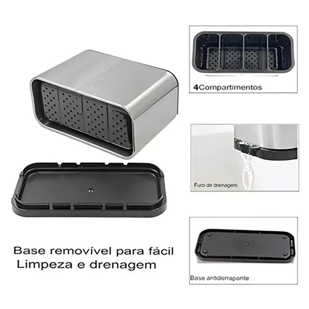 Porta-Talheres de Inox Escorredor com 4 Divisórias e Drenagem - Organização e Praticidade para Sua Cozinha!