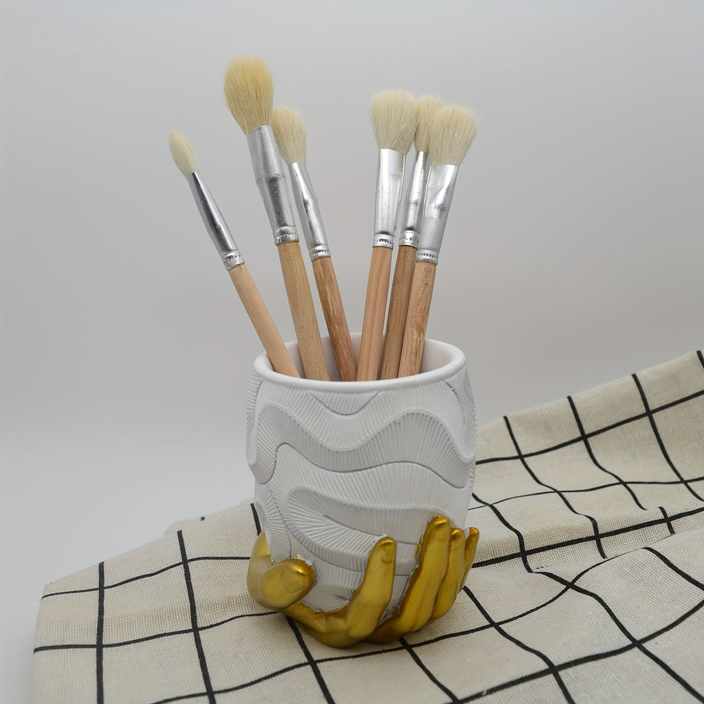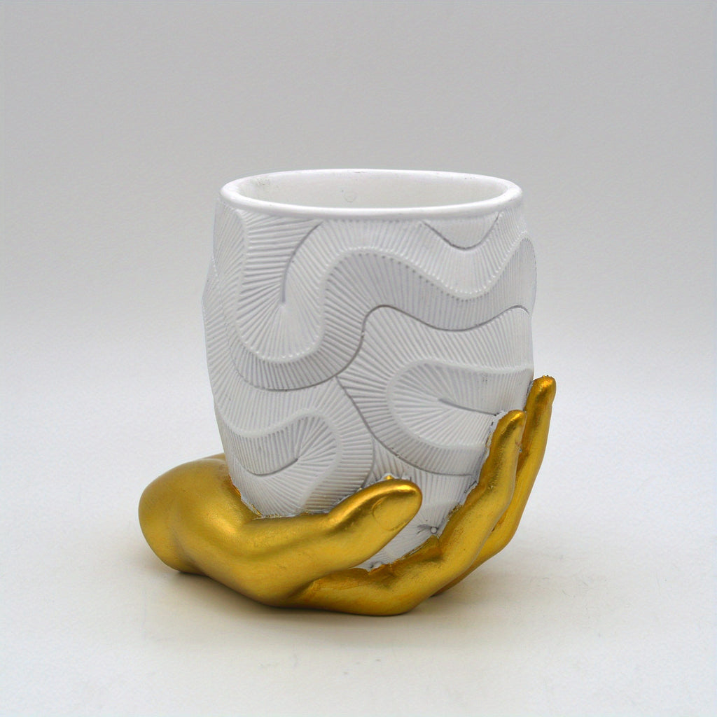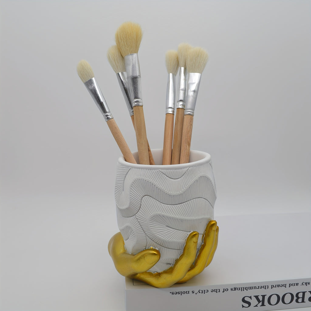 🌟 Recipiente de Caneta em Resina Dourada com Base em Formato de Mão – Elegância e Criatividade em Sua Mesa!