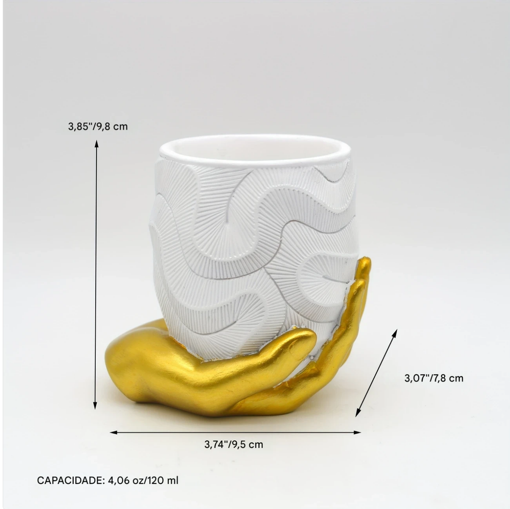 ✅ Design Exclusivo – Base em forma de mão + resina dourada texturizada