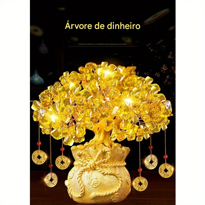 💰 Árvore do Dinheiro em Resina com Folhas de Cristal Natural – Prosperidade e Energia Positiva para Seu Espaço!