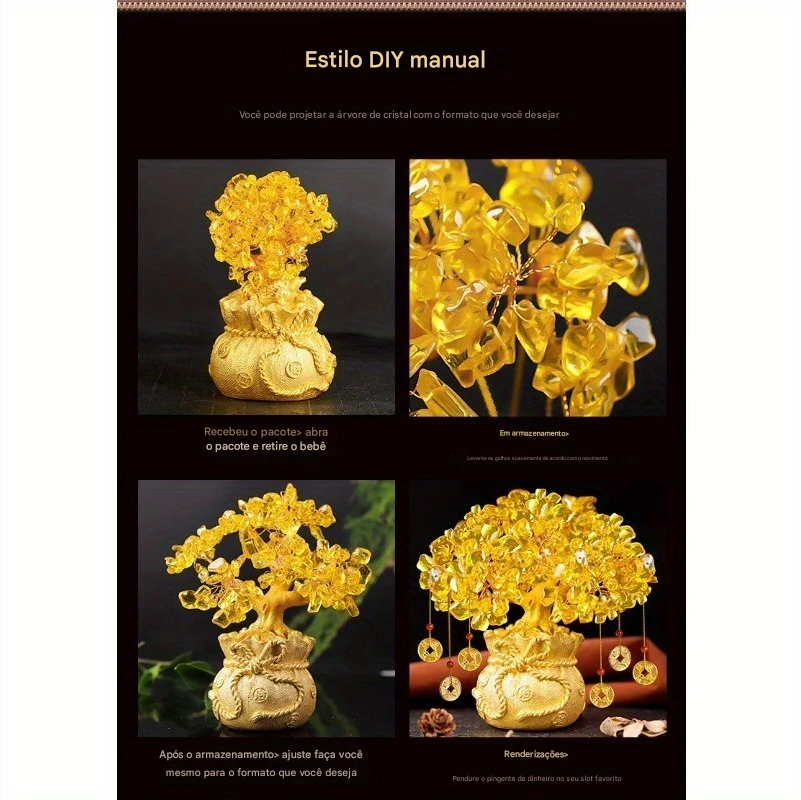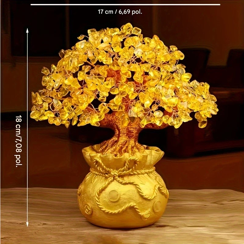 Atraia riqueza, sorte e boas energias para sua casa ou escritório com esta Árvore do Dinheiro Feng Shui, feita em resina e folhas de cristal natural. Uma peça decorativa poderosa que combina espiritualidade e elegância!