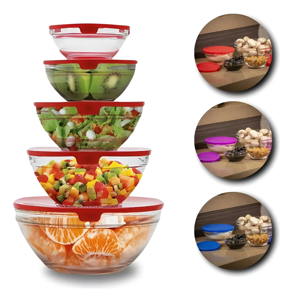 🍯 Conjunto de 5 Potes de Vidro Herméticos – Organização Colorida e Funcional para Sua Cozinha!