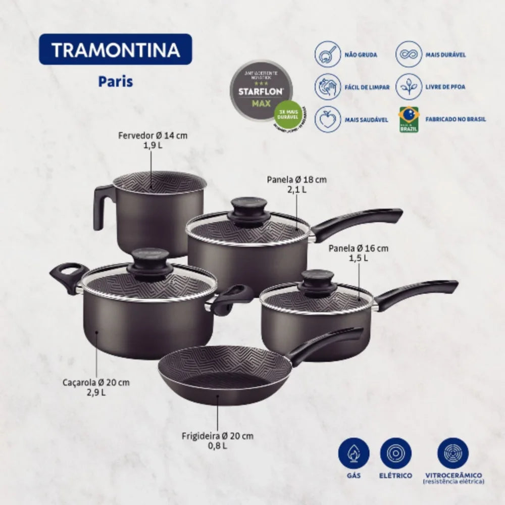 🌟 Jogo de Panelas Tramontina Paris 5 Peças – Tecnologia e Elegância Para Sua Cozinha!